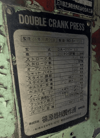 - 機械のプレート(メーカー、型式、年式)